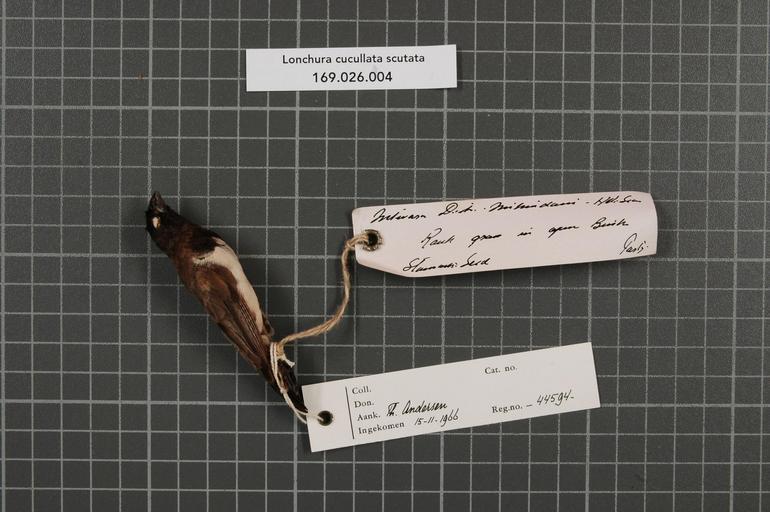 | Keywords: Naturalis Biodiversity Center - RMNH.AVES.44594 1 - Lonchura cucullata scutata (Heuglin, 1863) - Estrildidae - bird skin specimen.jpeg artwork Dimensions artwork Document type Estrildidae Lonchura Individual count 1 Infraspecific epithet scutata Infraspecific rank Institution Naturalis Kind of unit artwork Kind of unit specimen skin Life stage Tanzania Mtwara Distr Mikindani Medium artwork Nomenclatural code Occurrence ID page Other fields Other versions artwork Permission license Naturalis donation CC-0 Publication location Scientific name Lonchura cucullata scutata Heuglin 1863 Scientific name authorship Heuglin 1863 male Source url http //bioportal naturalis nl Specific epithet cucullata State or province Mtwara Distr Subject keywords artwork Subject keywords publication Title artwork Title publication Type status Uploaded with GWToolset Naturalis_Biodiversity_Center_-_RMNH AVES 44594_1_-_Lonchura_cucullata_scutata_ Heuglin _1863 _-_Estrildidae_-_bird_skin_specimen http //medialib naturalis nl/file/id/RMNH AVES 44594_1/format/large Media donated by Naturalis Biodiversity Center Songbird specimens at Naturalis Biodiversity Center Lonchura cucullata Lonchura |