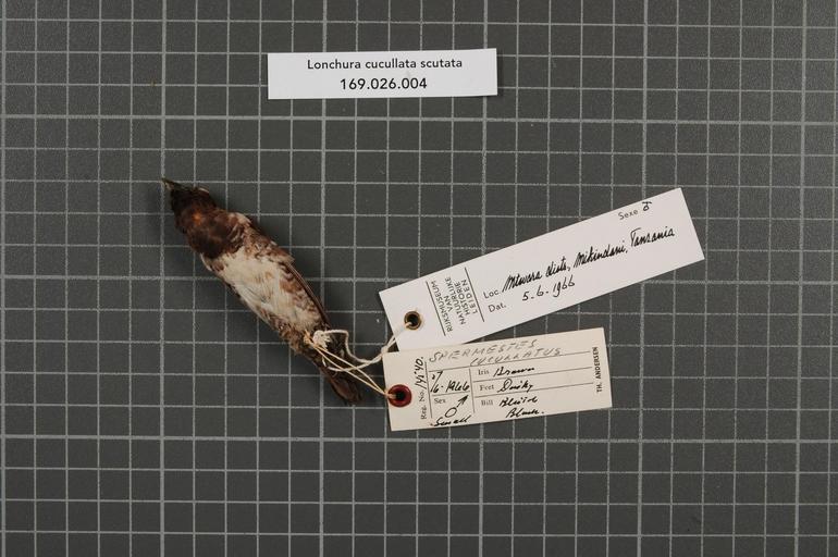 | Keywords: Naturalis Biodiversity Center - RMNH.AVES.44596 2 - Lonchura cucullata scutata (Heuglin, 1863) - Estrildidae - bird skin specimen.jpeg artwork Dimensions artwork Document type Estrildidae Lonchura Individual count 1 Infraspecific epithet scutata Infraspecific rank Institution Naturalis Kind of unit artwork Kind of unit specimen skin Life stage Tanzania Mtwara Distr Mikindani Medium artwork Nomenclatural code Occurrence ID page Other fields Other versions artwork Permission license Naturalis donation CC-0 Publication location Scientific name Lonchura cucullata scutata Heuglin 1863 Scientific name authorship Heuglin 1863 male Source url http //bioportal naturalis nl Specific epithet cucullata State or province Mtwara Distr Subject keywords artwork Subject keywords publication Title artwork Title publication Type status Uploaded with GWToolset Naturalis_Biodiversity_Center_-_RMNH AVES 44596_2_-_Lonchura_cucullata_scutata_ Heuglin _1863 _-_Estrildidae_-_bird_skin_specimen http //medialib naturalis nl/file/id/RMNH AVES 44596_2/format/large Media donated by Naturalis Biodiversity Center Songbird specimens at Naturalis Biodiversity Center Lonchura cucullata Lonchura |
