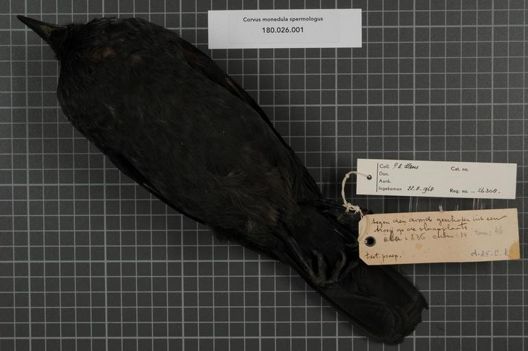 | Keywords: Naturalis Biodiversity Center - RMNH.AVES.56308 2 - Corvus monedula spermologus Vieillot, 1817 - Corvidae - bird skin specimen.jpeg artwork Dimensions artwork Document type Corvidae Corvus Individual count 1 Infraspecific epithet spermologus Infraspecific rank Institution Naturalis Kind of unit artwork Kind of unit specimen skin Life stage adult Netherlands Limburg Heerlen Ter Worm Medium artwork Nomenclatural code ADDITIONAL preparation info met dijbeen ADDITIONAL info remark Not PreservedSpeciment Occurrence ID page Other fields Other versions artwork Permission license Naturalis donation CC-0 Publication location Scientific name Corvus monedula spermologus Vieillot 1817 Scientific name authorship Vieillot 1817 male Source url http //bioportal naturalis nl Specific epithet monedula State or province Limburg Subject keywords artwork Subject keywords publication Title artwork Title publication Type status Uploaded with GWToolset Naturalis_Biodiversity_Center_-_RMNH AVES 56308_2_-_Corvus_monedula_spermologus_Vieillot _1817_-_Corvidae_-_bird_skin_specimen http //medialib naturalis nl/file/id/RMNH AVES 56308_2/format/large Media donated by Naturalis Biodiversity Center Songbird specimens at Naturalis Biodiversity Center Coloeus monedula Corvus |