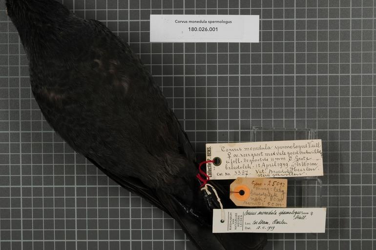 | Keywords: Naturalis Biodiversity Center - RMNH.AVES.56317 1 - Corvus monedula spermologus Vieillot, 1817 - Corvidae - bird skin specimen.jpeg artwork Dimensions artwork Document type Corvidae Corvus Individual count 1 Infraspecific epithet spermologus Infraspecific rank Institution Naturalis Kind of unit artwork Kind of unit specimen skin Life stage Netherlands Limburg Heerlen Ter Worm Medium artwork Nomenclatural code Bodily condition vet ADDITIONAL preparation info P Hens Occurrence ID page Other fields Other versions artwork Permission license Naturalis donation CC-0 Publication location Scientific name Corvus monedula spermologus Vieillot 1817 Scientific name authorship Vieillot 1817 female Source url http //bioportal naturalis nl Specific epithet monedula State or province Limburg Subject keywords artwork Subject keywords publication Title artwork Title publication Type status Uploaded with GWToolset Naturalis_Biodiversity_Center_-_RMNH AVES 56317_1_-_Corvus_monedula_spermologus_Vieillot _1817_-_Corvidae_-_bird_skin_specimen http //medialib naturalis nl/file/id/RMNH AVES 56317_1/format/large Media donated by Naturalis Biodiversity Center Songbird specimens at Naturalis Biodiversity Center Coloeus monedula Corvus |