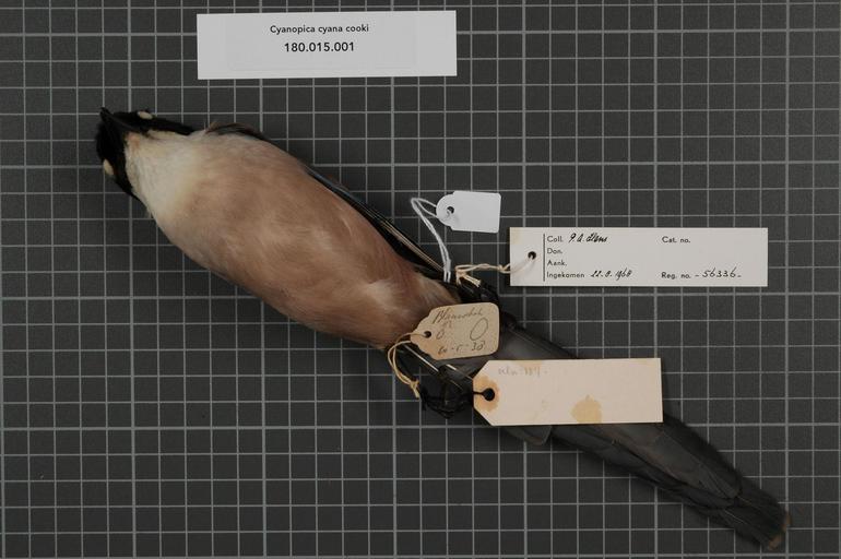 | Keywords: Naturalis Biodiversity Center - RMNH.AVES.56336 2 - Cyanopica cyana cooki Bonaparte, 1850 - Corvidae - bird skin specimen.jpeg artwork Dimensions artwork Document type Corvidae Cyanopica Individual count 1 Infraspecific epithet cooki Infraspecific rank Institution Naturalis Kind of unit artwork Kind of unit specimen skin Life stage Portugal bij Setubal Z van Lissabon Medium artwork Nomenclatural code General remarks Subsp gili is niet bekend in Peters Occurrence ID page Other fields Other versions artwork Permission license Naturalis donation CC-0 Publication location Scientific name Cyanopica cyana cooki Bonaparte 1850 Scientific name authorship Bonaparte 1850 male Source url http //bioportal naturalis nl Specific epithet cyana State or province Subject keywords artwork Subject keywords publication Title artwork Title publication Type status Uploaded with GWToolset Naturalis_Biodiversity_Center_-_RMNH AVES 56336_2_-_Cyanopica_cyana_cooki_Bonaparte _1850_-_Corvidae_-_bird_skin_specimen http //medialib naturalis nl/file/id/RMNH AVES 56336_2/format/large Media donated by Naturalis Biodiversity Center Songbird specimens at Naturalis Biodiversity Center Cyanopica cyanus Cyanopica |
