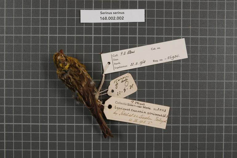 | Keywords: Naturalis Biodiversity Center - RMNH.AVES.56924 1 - Serinus serinus (Linnaeus, 1766) - Fringillidae - bird skin specimen.jpeg artwork Dimensions artwork Document type Fringillidae Serinus Individual count 1 Infraspecific epithet Infraspecific rank Institution Naturalis Kind of unit artwork Kind of unit specimen skin Life stage Portugal Z v Lissabon bij Setubal Medium artwork Nomenclatural code Occurrence ID page Other fields Other versions artwork Permission license Naturalis donation CC-0 Publication location Scientific name Serinus serinus Linnaeus 1766 Scientific name authorship Linnaeus 1766 male Source url http //bioportal naturalis nl Specific epithet serinus State or province Subject keywords artwork Subject keywords publication Title artwork Title publication Type status Uploaded with GWToolset Naturalis_Biodiversity_Center_-_RMNH AVES 56924_1_-_Serinus_serinus_ Linnaeus _1766 _-_Fringillidae_-_bird_skin_specimen http //medialib naturalis nl/file/id/RMNH AVES 56924_1/format/large Media donated by Naturalis Biodiversity Center Songbird specimens at Naturalis Biodiversity Center Serinus serinus Serinus |