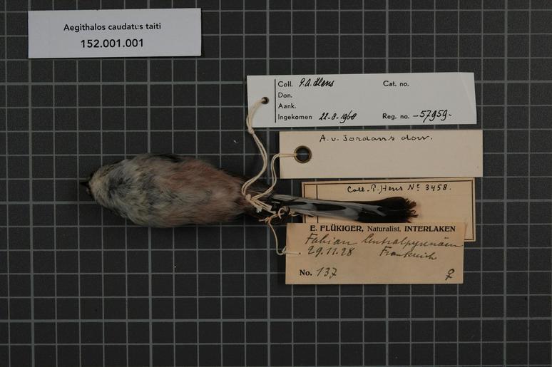 | Keywords: Naturalis Biodiversity Center - RMNH.AVES.57959 2 - Aegithalos caudatus taiti Ingram, 1913 - Aegithalidae - bird skin specimen.jpeg artwork Dimensions artwork Document type Aegithalidae Aegithalos Individual count 1 Infraspecific epithet taiti Infraspecific rank Institution Naturalis Kind of unit artwork Kind of unit specimen skin Life stage Frankrijk Centrale Pyreneeen Fabian Medium artwork Nomenclatural code Occurrence ID page Other fields Other versions artwork Permission license Naturalis donation CC-0 Publication location Scientific name Aegithalos caudatus taiti Ingram 1913 Scientific name authorship Ingram 1913 female Source url http //bioportal naturalis nl Specific epithet caudatus State or province Centrale Pyreneeen Subject keywords artwork Subject keywords publication Title artwork Title publication Type status Uploaded with GWToolset Naturalis_Biodiversity_Center_-_RMNH AVES 57959_2_-_Aegithalos_caudatus_taiti_Ingram _1913_-_Aegithalidae_-_bird_skin_specimen http //medialib naturalis nl/file/id/RMNH AVES 57959_2/format/large Media donated by Naturalis Biodiversity Center Songbird specimens at Naturalis Biodiversity Center Aegithalos caudatus Aegithalos |