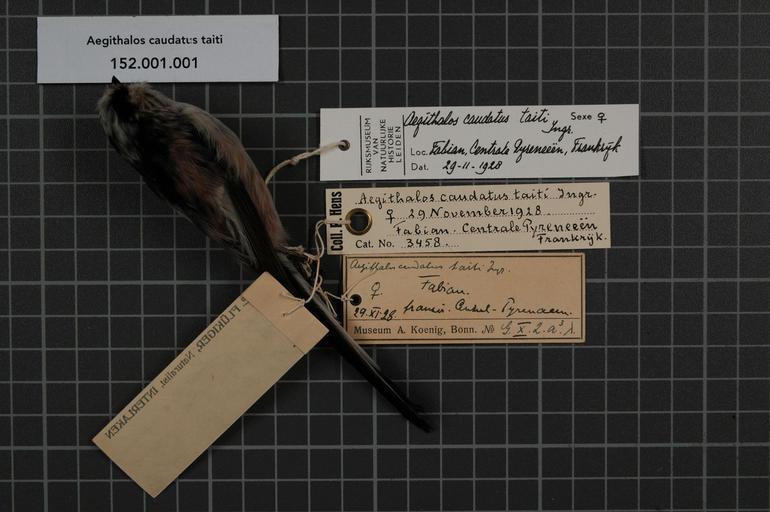 | Keywords: Naturalis Biodiversity Center - RMNH.AVES.57959 1 - Aegithalos caudatus taiti Ingram, 1913 - Aegithalidae - bird skin specimen.jpeg artwork Dimensions artwork Document type Aegithalidae Aegithalos Individual count 1 Infraspecific epithet taiti Infraspecific rank Institution Naturalis Kind of unit artwork Kind of unit specimen skin Life stage Frankrijk Centrale Pyreneeen Fabian Medium artwork Nomenclatural code Occurrence ID page Other fields Other versions artwork Permission license Naturalis donation CC-0 Publication location Scientific name Aegithalos caudatus taiti Ingram 1913 Scientific name authorship Ingram 1913 female Source url http //bioportal naturalis nl Specific epithet caudatus State or province Centrale Pyreneeen Subject keywords artwork Subject keywords publication Title artwork Title publication Type status Uploaded with GWToolset Naturalis_Biodiversity_Center_-_RMNH AVES 57959_1_-_Aegithalos_caudatus_taiti_Ingram _1913_-_Aegithalidae_-_bird_skin_specimen http //medialib naturalis nl/file/id/RMNH AVES 57959_1/format/large Media donated by Naturalis Biodiversity Center Songbird specimens at Naturalis Biodiversity Center Aegithalos caudatus Aegithalos |