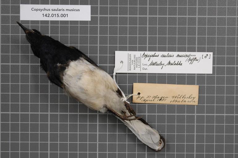 | Keywords: Naturalis Biodiversity Center - RMNH.AVES.129296 1 - Copsychus saularis musicus (Raffles, 1822) - Turdidae - bird skin specimen.jpeg artwork Dimensions artwork Document type Turdidae Copsychus Individual count 1 Infraspecific epithet musicus Infraspecific rank Institution Naturalis Kind of unit artwork Kind of unit specimen skin Life stage Medium artwork Nomenclatural code Sex remark On RMNH label male Occurrence ID page Other fields Other versions artwork Permission license Naturalis donation CC-0 Publication location Scientific name Copsychus saularis musicus Raffles 1822 Scientific name authorship Raffles 1822 male Source url http //bioportal naturalis nl Specific epithet saularis State or province Malacca Wellesley Subject keywords artwork Subject keywords publication Title artwork Title publication Type status Uploaded with GWToolset Naturalis_Biodiversity_Center_-_RMNH AVES 129296_1_-_Copsychus_saularis_musicus_ Raffles _1822 _-_Turdidae_-_bird_skin_specimen http //medialib naturalis nl/file/id/RMNH AVES 129296_1/format/large Media donated by Naturalis Biodiversity Center Songbird specimens at Naturalis Biodiversity Center Copsychus saularis museum specimens |