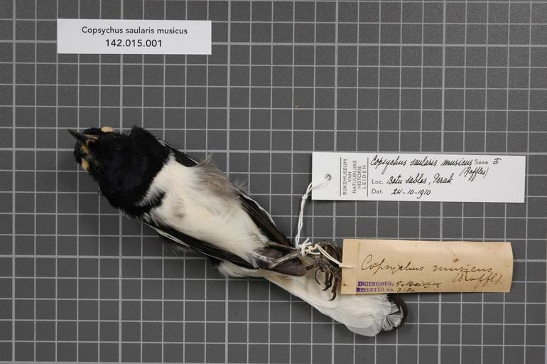 | Keywords: Naturalis Biodiversity Center - RMNH.AVES.129303 1 - Copsychus saularis musicus (Raffles, 1822) - Turdidae - bird skin specimen.jpeg  artwork Dimensions artwork Document type Turdidae Copsychus Individual count 1 Infraspecific epithet musicus Infraspecific rank Institution Naturalis Kind of unit artwork Kind of unit specimen skin Life stage Medium artwork Nomenclatural code Bodily condition Hoden pigm Occurrence ID page Other fields Other versions artwork Permission license Naturalis donation CC-0 Publication location Scientific name Copsychus saularis musicus Raffles 1822 Scientific name authorship Raffles 1822 male Source url http //bioportal naturalis nl Specific epithet saularis State or province Perak Subject keywords artwork Subject keywords publication Title artwork Title publication Type status Uploaded with GWToolset Naturalis_Biodiversity_Center_-_RMNH AVES 129303_1_-_Copsychus_saularis_musicus_ Raffles _1822 _-_Turdidae_-_bird_skin_specimen http //medialib naturalis nl/file/id/RMNH AVES 129303_1/format/large Media donated by Naturalis Biodiversity Center Songbird specimens at Naturalis Biodiversity Center Copsychus saularis museum specimens  |