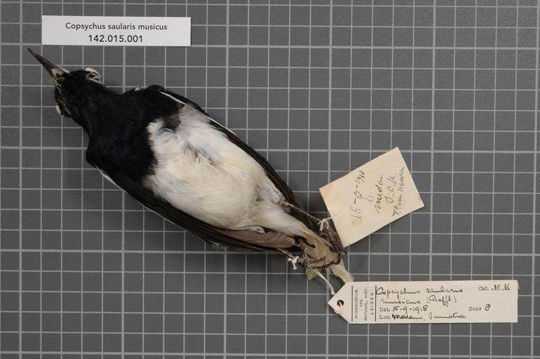 | Keywords: Naturalis Biodiversity Center - RMNH.AVES.129325 1 - Copsychus saularis musicus (Raffles, 1822) - Turdidae - bird skin specimen.jpeg artwork Dimensions artwork Document type Turdidae Copsychus Individual count 1 Infraspecific epithet musicus Infraspecific rank Institution Naturalis Kind of unit artwork Kind of unit specimen skin Life stage Medium artwork Nomenclatural code Additional info s o k Occurrence ID page Other fields Other versions artwork Permission license Naturalis donation CC-0 Publication location Scientific name Copsychus saularis musicus Raffles 1822 Scientific name authorship Raffles 1822 male Source url http //bioportal naturalis nl Specific epithet saularis State or province Subject keywords artwork Subject keywords publication Title artwork Title publication Type status Uploaded with GWToolset Naturalis_Biodiversity_Center_-_RMNH AVES 129325_1_-_Copsychus_saularis_musicus_ Raffles _1822 _-_Turdidae_-_bird_skin_specimen http //medialib naturalis nl/file/id/RMNH AVES 129325_1/format/large Media donated by Naturalis Biodiversity Center Songbird specimens at Naturalis Biodiversity Center Copsychus saularis museum specimens |