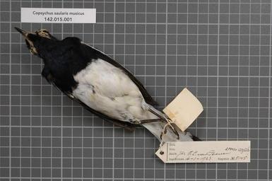 | Keywords: Naturalis Biodiversity Center - RMNH.AVES.129326 2 - Copsychus saularis musicus (Raffles, 1822) - Turdidae - bird skin specimen.jpeg artwork Dimensions artwork Document type Turdidae Copsychus Individual count 1 Infraspecific epithet musicus Infraspecific rank Institution Naturalis Kind of unit artwork Kind of unit specimen skin Life stage Medium artwork Nomenclatural code Additional info s o k Occurrence ID page Other fields Other versions artwork Permission license Naturalis donation CC-0 Publication location Scientific name Copsychus saularis musicus Raffles 1822 Scientific name authorship Raffles 1822 male Source url http //bioportal naturalis nl Specific epithet saularis State or province Subject keywords artwork Subject keywords publication Title artwork Title publication Type status Uploaded with GWToolset Naturalis_Biodiversity_Center_-_RMNH AVES 129326_2_-_Copsychus_saularis_musicus_ Raffles _1822 _-_Turdidae_-_bird_skin_specimen http //medialib naturalis nl/file/id/RMNH AVES 129326_2/format/large Media donated by Naturalis Biodiversity Center Songbird specimens at Naturalis Biodiversity Center Copsychus saularis museum specimens |