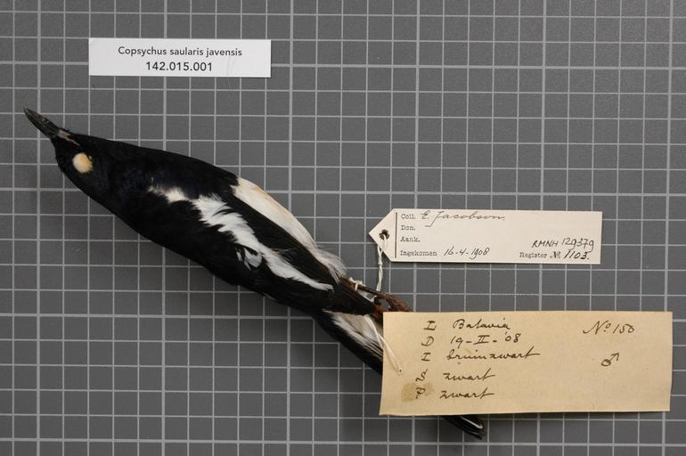 | Keywords: Naturalis Biodiversity Center - RMNH.AVES.129379 2 - Copsychus saularis javensis Chasen & Kloss, 1930 - Turdidae - bird skin specimen.jpeg artwork Dimensions artwork Document type Turdidae Copsychus Individual count 1 Infraspecific epithet javensis Infraspecific rank Institution Naturalis Kind of unit artwork Kind of unit specimen skin Life stage Medium artwork Nomenclatural code Occurrence ID page Other fields Other versions artwork Permission license Naturalis donation CC-0 Publication location Scientific name Copsychus saularis javensis Chasen Kloss 1930 Scientific name authorship Chasen Kloss 1930 male Source url http //bioportal naturalis nl Specific epithet saularis State or province Batavia Subject keywords artwork Subject keywords publication Title artwork Title publication Type status Uploaded with GWToolset Naturalis_Biodiversity_Center_-_RMNH AVES 129379_2_-_Copsychus_saularis_javensis_Chasen_ _Kloss _1930_-_Turdidae_-_bird_skin_specimen http //medialib naturalis nl/file/id/RMNH AVES 129379_2/format/large Media donated by Naturalis Biodiversity Center Songbird specimens at Naturalis Biodiversity Center Copsychus saularis museum specimens |