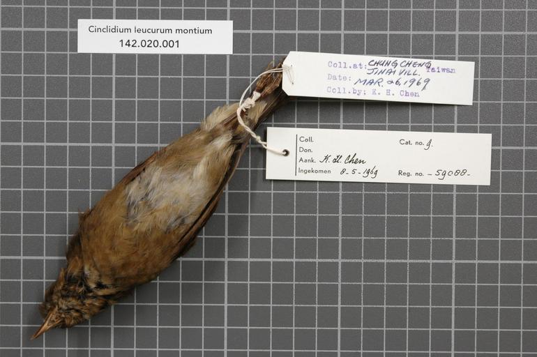 | Keywords: Naturalis Biodiversity Center - RMNH.AVES.59088 2- - Cinclidium leucurum montium (Swinhoe, 1864) - Turdidae - bird skin specimen.jpeg artwork Dimensions artwork Document type Turdidae Cinclidium Individual count 1 Infraspecific epithet montium Infraspecific rank Institution Naturalis Kind of unit artwork Kind of unit specimen skin Life stage Taiwan Jinai Vill Chung Cheng Medium artwork Nomenclatural code General remarks Label Chen also contains some text in Japanese / Tiwanese Country remark RMNH label Taiwan Formosa Sex remark Chen lael maleRMNH label male sign crossed out and replaced by a female sign Occurrence ID page Other fields Other versions artwork Permission license Naturalis donation CC-0 Publication location Scientific name Cinclidium leucurum montium Swinhoe 1864 Scientific name authorship Swinhoe 1864 male Source url http //bioportal naturalis nl Specific epithet leucurum State or province Subject keywords artwork Subject keywords publication Title artwork Title publication Type status Uploaded with GWToolset Naturalis_Biodiversity_Center_-_RMNH AVES 59088_2 _-_Cinclidium_leucurum_montium_ Swinhoe _1864 _-_Turdidae_-_bird_skin_specimen http //medialib naturalis nl/file/id/RMNH AVES 59088_2/format/large Media donated by Naturalis Biodiversity Center Songbird specimens at Naturalis Biodiversity Center Myiomela leucura Cinclidium |