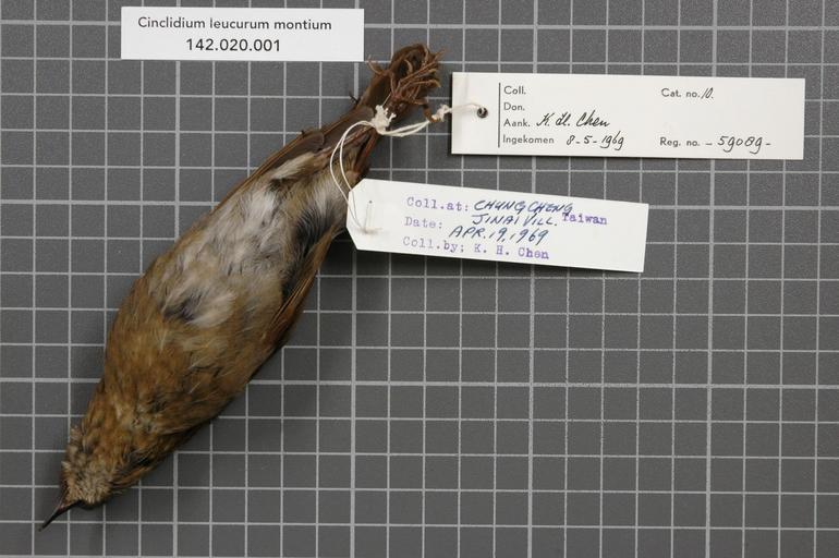 | Keywords: Naturalis Biodiversity Center - RMNH.AVES.59089 2- - Cinclidium leucurum montium (Swinhoe, 1864) - Turdidae - bird skin specimen.jpeg artwork Dimensions artwork Document type Turdidae Cinclidium Individual count 1 Infraspecific epithet montium Infraspecific rank Institution Naturalis Kind of unit artwork Kind of unit specimen skin Life stage Taiwan Jinai Vill Chung Cheng Medium artwork Nomenclatural code General remarks Label Chen also contains some text in Japanese / Tiwanese Country remark RMNH label Taiwan Formosa Occurrence ID page Other fields Other versions artwork Permission license Naturalis donation CC-0 Publication location Scientific name Cinclidium leucurum montium Swinhoe 1864 Scientific name authorship Swinhoe 1864 female Source url http //bioportal naturalis nl Specific epithet leucurum State or province Subject keywords artwork Subject keywords publication Title artwork Title publication Type status Uploaded with GWToolset Naturalis_Biodiversity_Center_-_RMNH AVES 59089_2 _-_Cinclidium_leucurum_montium_ Swinhoe _1864 _-_Turdidae_-_bird_skin_specimen http //medialib naturalis nl/file/id/RMNH AVES 59089_2/format/large Media donated by Naturalis Biodiversity Center Songbird specimens at Naturalis Biodiversity Center Myiomela leucura Cinclidium |