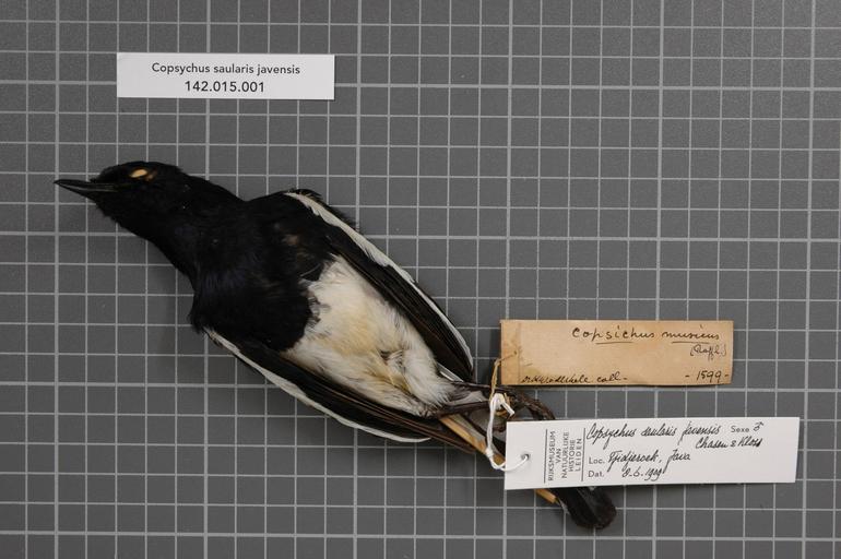 | Keywords: Naturalis Biodiversity Center - RMNH.AVES.129388 1 - Copsychus saularis javensis Chasen & Kloss, 1930 - Turdidae - bird skin specimen.jpeg artwork Dimensions artwork Document type Turdidae Copsychus Individual count 1 Infraspecific epithet javensis Infraspecific rank Institution Naturalis Kind of unit artwork Kind of unit specimen skin Life stage Medium artwork Nomenclatural code Occurrence ID page Other fields Other versions artwork Permission license Naturalis donation CC-0 Publication location Scientific name Copsychus saularis javensis Chasen Kloss 1930 Scientific name authorship Chasen Kloss 1930 male Source url http //bioportal naturalis nl Specific epithet saularis State or province Subject keywords artwork Subject keywords publication Title artwork Title publication Type status Uploaded with GWToolset Naturalis_Biodiversity_Center_-_RMNH AVES 129388_1_-_Copsychus_saularis_javensis_Chasen_ _Kloss _1930_-_Turdidae_-_bird_skin_specimen http //medialib naturalis nl/file/id/RMNH AVES 129388_1/format/large Media donated by Naturalis Biodiversity Center Songbird specimens at Naturalis Biodiversity Center Copsychus saularis museum specimens |