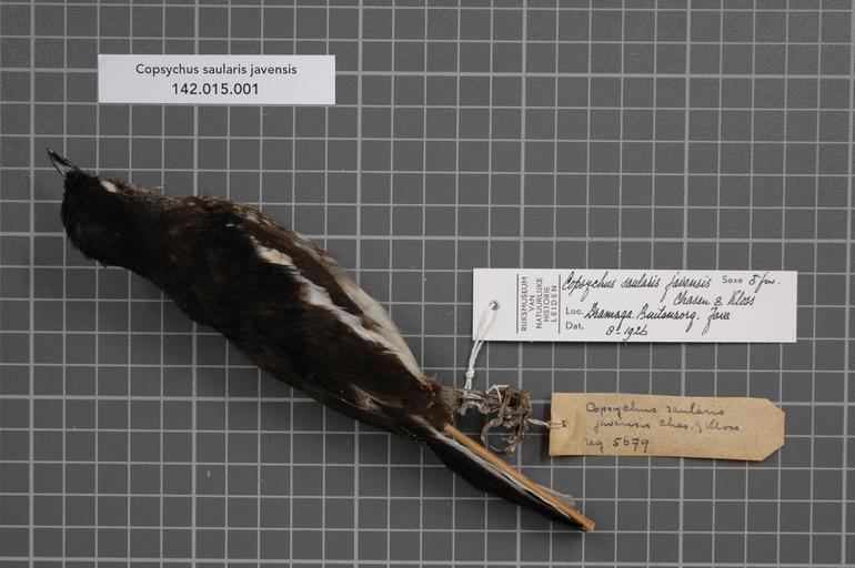 | Keywords: Naturalis Biodiversity Center - RMNH.AVES.129399 1 - Copsychus saularis javensis Chasen & Kloss, 1930 - Turdidae - bird skin specimen.jpeg artwork Dimensions artwork Document type Turdidae Copsychus Individual count 1 Infraspecific epithet javensis Infraspecific rank Institution Naturalis Kind of unit artwork Kind of unit specimen skin Life stage juvenile Medium artwork Nomenclatural code Occurrence ID page Other fields Other versions artwork Permission license Naturalis donation CC-0 Publication location Scientific name Copsychus saularis javensis Chasen Kloss 1930 Scientific name authorship Chasen Kloss 1930 male Source url http //bioportal naturalis nl Specific epithet saularis State or province Subject keywords artwork Subject keywords publication Title artwork Title publication Type status Uploaded with GWToolset Naturalis_Biodiversity_Center_-_RMNH AVES 129399_1_-_Copsychus_saularis_javensis_Chasen_ _Kloss _1930_-_Turdidae_-_bird_skin_specimen http //medialib naturalis nl/file/id/RMNH AVES 129399_1/format/large Media donated by Naturalis Biodiversity Center Songbird specimens at Naturalis Biodiversity Center Copsychus saularis museum specimens |