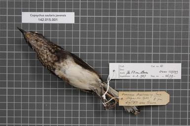 | Keywords: Naturalis Biodiversity Center - RMNH.AVES.129399 2 - Copsychus saularis javensis Chasen & Kloss, 1930 - Turdidae - bird skin specimen.jpeg artwork Dimensions artwork Document type Turdidae Copsychus Individual count 1 Infraspecific epithet javensis Infraspecific rank Institution Naturalis Kind of unit artwork Kind of unit specimen skin Life stage juvenile Medium artwork Nomenclatural code Occurrence ID page Other fields Other versions artwork Permission license Naturalis donation CC-0 Publication location Scientific name Copsychus saularis javensis Chasen Kloss 1930 Scientific name authorship Chasen Kloss 1930 male Source url http //bioportal naturalis nl Specific epithet saularis State or province Subject keywords artwork Subject keywords publication Title artwork Title publication Type status Uploaded with GWToolset Naturalis_Biodiversity_Center_-_RMNH AVES 129399_2_-_Copsychus_saularis_javensis_Chasen_ _Kloss _1930_-_Turdidae_-_bird_skin_specimen http //medialib naturalis nl/file/id/RMNH AVES 129399_2/format/large Media donated by Naturalis Biodiversity Center Songbird specimens at Naturalis Biodiversity Center Copsychus saularis museum specimens |