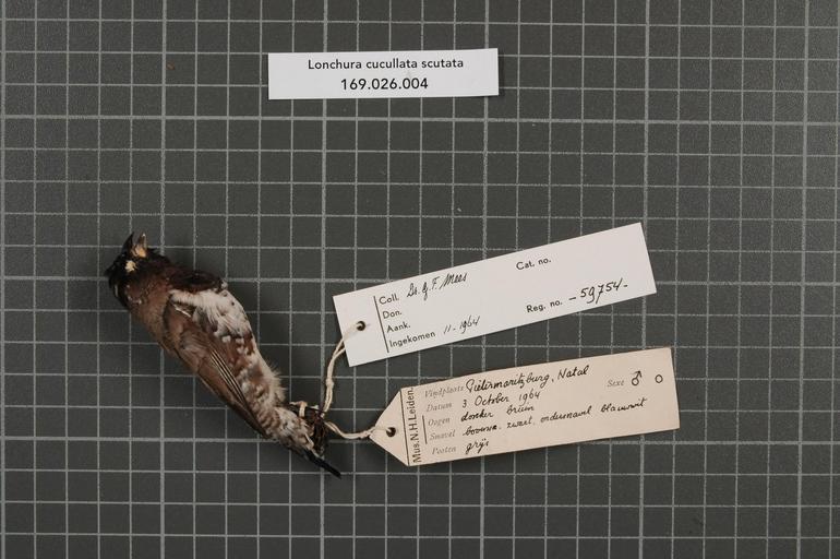 | Keywords: Naturalis Biodiversity Center - RMNH.AVES.59754 1 - Lonchura cucullata scutata (Heuglin, 1863) - Estrildidae - bird skin specimen.jpeg artwork Dimensions artwork Document type Estrildidae Lonchura Individual count 1 Infraspecific epithet scutata Infraspecific rank Institution Naturalis Kind of unit artwork Kind of unit specimen skin Life stage Natal Pietermaritzburg Wingrove Medium artwork Nomenclatural code Occurrence ID page Other fields Other versions artwork Permission license Naturalis donation CC-0 Publication location Scientific name Lonchura cucullata scutata Heuglin 1863 Scientific name authorship Heuglin 1863 male Source url http //bioportal naturalis nl Specific epithet cucullata State or province Natal Subject keywords artwork Subject keywords publication Title artwork Title publication Type status Uploaded with GWToolset Naturalis_Biodiversity_Center_-_RMNH AVES 59754_1_-_Lonchura_cucullata_scutata_ Heuglin _1863 _-_Estrildidae_-_bird_skin_specimen http //medialib naturalis nl/file/id/RMNH AVES 59754_1/format/large Media donated by Naturalis Biodiversity Center Songbird specimens at Naturalis Biodiversity Center Lonchura cucullata Lonchura |