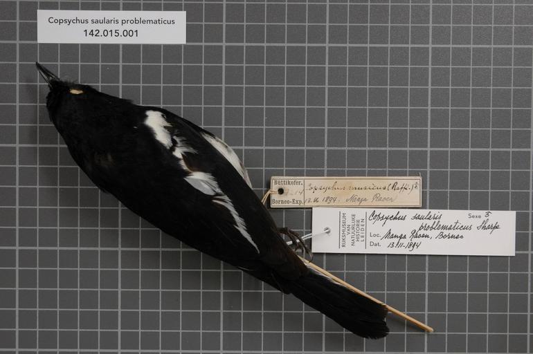 | Keywords: Naturalis Biodiversity Center - RMNH.AVES.129443 1 - Copsychus saularis problematicus Sharpe, 1876 - Turdidae - bird skin specimen.jpeg  artwork Dimensions artwork Document type Turdidae Copsychus Individual count 1 Infraspecific epithet problematicus Infraspecific rank Institution Naturalis Kind of unit artwork Kind of unit specimen skin Life stage Medium artwork Nomenclatural code Additional info remark unclear Occurrence ID page Other fields Other versions artwork Permission license Naturalis donation CC-0 Publication location Scientific name Copsychus saularis problematicus Sharpe 1876 Scientific name authorship Sharpe 1876 male Source url http //bioportal naturalis nl Specific epithet saularis State or province Subject keywords artwork Subject keywords publication Title artwork Title publication Type status Uploaded with GWToolset Naturalis_Biodiversity_Center_-_RMNH AVES 129443_1_-_Copsychus_saularis_problematicus_Sharpe _1876_-_Turdidae_-_bird_skin_specimen http //medialib naturalis nl/file/id/RMNH AVES 129443_1/format/large Media donated by Naturalis Biodiversity Center Songbird specimens at Naturalis Biodiversity Center Copsychus saularis museum specimens  |