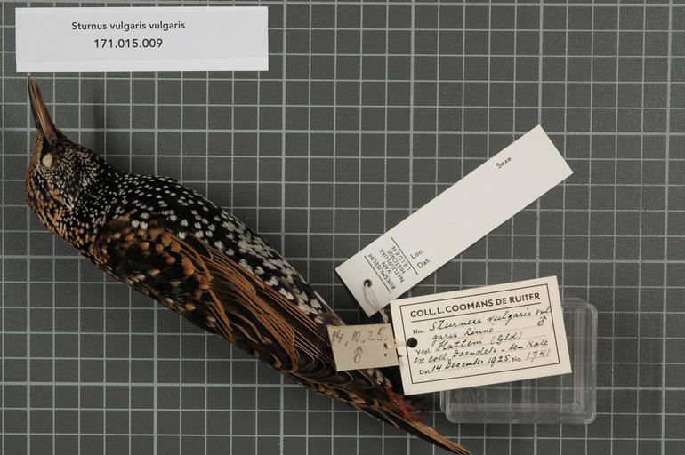 Keywords: Naturalis Biodiversity Center - RMNH.AVES.60671 1 - Sturnus vulgaris vulgaris Linnaeus, 1758 - Sturnidae - bird skin specimen.jpeg artwork Dimensions artwork Document type Sturnidae Sturnus Individual count 1 Infraspecific epithet vulgaris Infraspecific rank Institution Naturalis Kind of unit artwork Kind of unit specimen skin Life stage Netherlands Gelderland Hattem Medium artwork Nomenclatural code Occurrence ID page Other fields Other versions artwork Permission license Naturalis donation CC-0 Publication location Scientific name Sturnus vulgaris vulgaris Linnaeus 1758 Scientific name authorship Linnaeus 1758 male Source url http //bioportal naturalis nl Specific epithet vulgaris State or province Gelderland Subject keywords artwork Subject keywords publication Title artwork Title publication Type status Uploaded with GWToolset Naturalis_Biodiversity_Center_-_RMNH AVES 60671_1_-_Sturnus_vulgaris_vulgaris_Linnaeus _1758_-_Sturnidae_-_bird_skin_specimen http //medialib naturalis nl/file/id/RMNH AVES 60671_1/format/large Media donated by Naturalis Biodiversity Center Songbird specimens at Naturalis Biodiversity Center Sturnus vulgaris museum specimens |