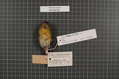 Keywords: Naturalis Biodiversity Center - RMNH.AVES.60742 1 - Carduelis spinus (Linnaeus, 1758) - Fringillidae - bird skin specimen.jpeg artwork Dimensions artwork Document type Fringillidae Carduelis Individual count 1 Infraspecific epithet Infraspecific rank Institution Naturalis Kind of unit artwork Kind of unit specimen skin Life stage Gld Hattem Medium artwork Nomenclatural code ADDITIONAL preparation info W Engels Zwolle Occurrence ID page Other fields Other versions artwork Permission license Naturalis donation CC-0 Publication location Scientific name Carduelis spinus Linnaeus 1758 Scientific name authorship Linnaeus 1758 male Source url http //bioportal naturalis nl Specific epithet spinus State or province Gld Subject keywords artwork Subject keywords publication Title artwork Title publication Type status Uploaded with GWToolset Naturalis_Biodiversity_Center_-_RMNH AVES 60742_1_-_Carduelis_spinus_ Linnaeus _1758 _-_Fringillidae_-_bird_skin_specimen http //medialib naturalis nl/file/id/RMNH AVES 60742_1/format/large Media donated by Naturalis Biodiversity Center Songbird specimens at Naturalis Biodiversity Center Spinus spinus Carduelis |