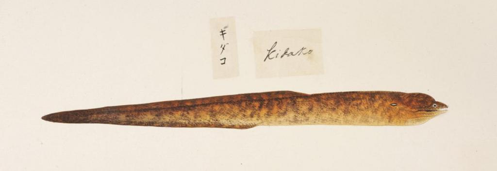 | Keywords: Naturalis Biodiversity Center - RMNH.ART.470 - Gymnothorax kidako - Kawahara Keiga - 1823 - 1829 - Siebold Collection - pencil drawing - water colour.jpeg Biohist Creator Kawahara Keiga Author artwork Author publication Basis of record drawing/water colour Catalog number RMNH ART 470 Collection code Siebold collection Collection date Japan Date artwork artwork Dimensions artwork min 9 x 12 cm max 34 x 50 cm Document type Gymnothorax Individual count Infraspecific epithet Infraspecific rank Institution Naturalis Kind of unit artwork Kind of unit specimen Life stage Nagasaki Medium artwork pencil drawing watercolour paper Nomenclatural code Gymnothorax kidako Occurrence ID page Other fields Other versions artwork Permission license Naturalis donation PD-Art-100 Publication location Scientific name Gymnothorax kidako Scientific name authorship Source url Specific epithet kidako State or province Subject keywords artwork Subject keywords publication Title artwork Title publication Type status Uploaded with GWToolset Naturalis_Biodiversity_Center_-_RMNH ART 470_-_Gymnothorax_kidako_-_Kawahara_Keiga_-_1823_-_1829_-_Siebold_Collection_-_pencil_drawing_-_water_colour http //medialib naturalis nl/file/id/RMNH ART 470/format/large Media donated by Naturalis Biodiversity Center Kawahara Collection at Naturalis Biodiversity Center Gymnothorax kidako |
