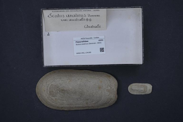 Keywords: Naturalis Biodiversity Center - RMNH.MOL.134180 - Scutus anatinus (Donovan, 1820) - Fissurellidae - Mollusc shell.jpeg artwork Dimensions artwork Document type Fissurellidae subfamily Emarginulinae Scutus Individual count Infraspecific epithet Infraspecific rank Institution Naturalis Kind of unit artwork Kind of unit specimen shell Life stage Medium artwork Nomenclatural code Source institute Leiden Scale the width of the text on the species/QR-code label is 38 mm Occurrence ID page Other fields Other versions artwork Permission license Naturalis donation CC-0 Mollusca Publication location Scientific name Scutus anatinus Donovan 1820 Scientific name authorship Donovan 1820 Source url http //bioportal naturalis nl Specific epithet anatinus State or province Subject keywords artwork Subject keywords publication Title artwork Title publication Type status Uploaded with GWToolset Naturalis_Biodiversity_Center_-_RMNH MOL 134180_-_Scutus_anatinus_ Donovan _1820 _-_Fissurellidae_-_Mollusc_shell http //medialib naturalis nl/file/id/RMNH MOL 134180/format/large Molluscs at Naturalis from the Rijksmuseum van Natuurlijke Historie Media donated by Naturalis Biodiversity Center Scutus Scutus anatinus
