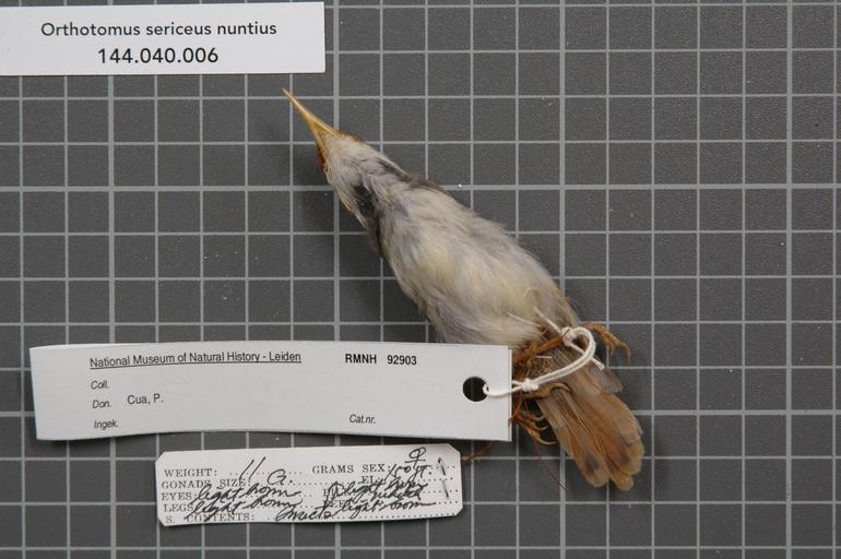 | Keywords: Naturalis Biodiversity Center - RMNH.AVES.92903 2 - Orthotomus sericeus nuntius Bangs, 1922 - Sylviidae - bird skin specimen.jpeg artwork Dimensions artwork Document type Sylviidae Orthotomus Individual count 1 Infraspecific epithet nuntius Infraspecific rank Institution Naturalis Kind of unit artwork Kind of unit specimen skin Life stage Philippines Palawan Quezon Medium artwork Nomenclatural code Occurrence ID page Other fields Other versions artwork Permission license Naturalis donation CC-0 Publication location Scientific name Orthotomus sericeus nuntius Bangs 1922 Scientific name authorship Bangs 1922 female Source url http //bioportal naturalis nl Specific epithet sericeus State or province Palawan Subject keywords artwork Subject keywords publication Title artwork Title publication Type status Uploaded with GWToolset Naturalis_Biodiversity_Center_-_RMNH AVES 92903_2_-_Orthotomus_sericeus_nuntius_Bangs _1922_-_Sylviidae_-_bird_skin_specimen http //medialib naturalis nl/file/id/RMNH AVES 92903_2/format/large Media donated by Naturalis Biodiversity Center Songbird specimens at Naturalis Biodiversity Center Orthotomus sericeus |