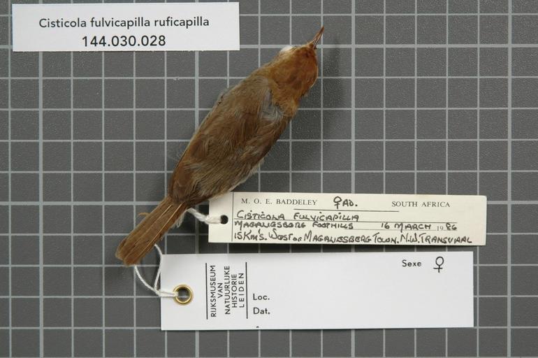 | Keywords: Naturalis Biodiversity Center - RMNH.AVES.85836 1 - Cisticola fulvicapilla ruficapilla (Smith, 1842) - Sylviidae - bird skin specimen.jpeg artwork Dimensions artwork Document type Sylviidae Cisticola Individual count 1 Infraspecific epithet ruficapilla Infraspecific rank Institution Naturalis Kind of unit artwork Kind of unit specimen skin Life stage adult South Africa N W Transvaal Magaliesberg foothills 15 Km's West of Magaliesberg Town Medium artwork Nomenclatural code Occurrence ID page Other fields Other versions artwork Permission license Naturalis donation CC-0 Publication location Scientific name Cisticola fulvicapilla ruficapilla Smith 1842 Scientific name authorship Smith 1842 female Source url http //bioportal naturalis nl Specific epithet fulvicapilla State or province N W Transvaal Subject keywords artwork Subject keywords publication Title artwork Title publication Type status Uploaded with GWToolset Naturalis_Biodiversity_Center_-_RMNH AVES 85836_1_-_Cisticola_fulvicapilla_ruficapilla_ Smith _1842 _-_Sylviidae_-_bird_skin_specimen http //medialib naturalis nl/file/id/RMNH AVES 85836_1/format/large Media donated by Naturalis Biodiversity Center Songbird specimens at Naturalis Biodiversity Center Cisticola fulvicapilla museum specimens |