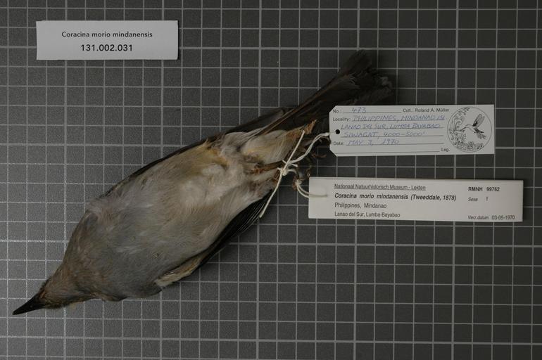 | Keywords: Naturalis Biodiversity Center - RMNH.AVES.99762 1 - Coracina morio mindanensis (Tweeddale, 1878) - Campephagidae - bird skin specimen.jpeg artwork Dimensions artwork Document type Campephagidae Coracina Individual count 1 Infraspecific epithet mindanensis Infraspecific rank Institution Naturalis Kind of unit artwork Kind of unit specimen skin Life stage Philippines Mindanao Lanao del Sur Lumba-Bayabao Siwagat Medium artwork Nomenclatural code Occurrence ID page Other fields Other versions artwork Permission license Naturalis donation CC-0 Publication location Scientific name Coracina morio mindanensis Tweeddale 1878 Scientific name authorship Tweeddale 1878 female Source url http //bioportal naturalis nl Specific epithet morio State or province Mindanao Subject keywords artwork Subject keywords publication Title artwork Title publication Type status Uploaded with GWToolset Naturalis_Biodiversity_Center_-_RMNH AVES 99762_1_-_Coracina_morio_mindanensis_ Tweeddale _1878 _-_Campephagidae_-_bird_skin_specimen http //medialib naturalis nl/file/id/RMNH AVES 99762_1/format/large Media donated by Naturalis Biodiversity Center Songbird specimens at Naturalis Biodiversity Center Coracina morio |