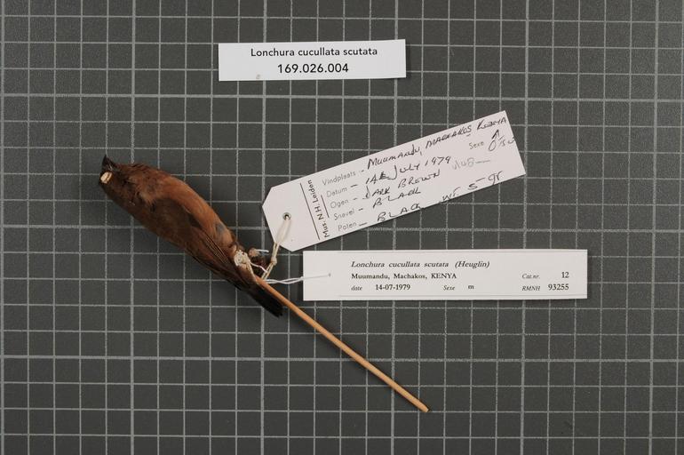 | Keywords: Naturalis Biodiversity Center - RMNH.AVES.93255 1 - Lonchura cucullata scutata (Heuglin, 1863) - Estrildidae - bird skin specimen.jpeg artwork Dimensions artwork Document type Estrildidae Lonchura Individual count 1 Infraspecific epithet scutata Infraspecific rank Institution Naturalis Kind of unit artwork Kind of unit specimen skin Life stage Kenya Machakos Muumandu Medium artwork Nomenclatural code Occurrence ID page Other fields Other versions artwork Permission license Naturalis donation CC-0 Publication location Scientific name Lonchura cucullata scutata Heuglin 1863 Scientific name authorship Heuglin 1863 male Source url http //bioportal naturalis nl Specific epithet cucullata State or province Machakos Subject keywords artwork Subject keywords publication Title artwork Title publication Type status Uploaded with GWToolset Naturalis_Biodiversity_Center_-_RMNH AVES 93255_1_-_Lonchura_cucullata_scutata_ Heuglin _1863 _-_Estrildidae_-_bird_skin_specimen http //medialib naturalis nl/file/id/RMNH AVES 93255_1/format/large Media donated by Naturalis Biodiversity Center Songbird specimens at Naturalis Biodiversity Center Lonchura cucullata museum specimens |