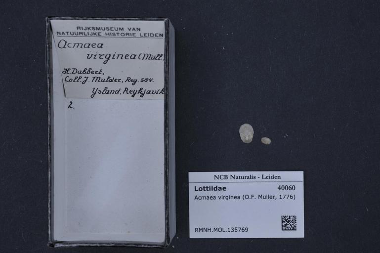 | Keywords: Naturalis Biodiversity Center - RMNH.MOL.135769 - Tectura virginea (Müller, 1776) - Lottiidae - Mollusc shell.jpeg artwork Dimensions artwork Document type Lottiidae Tectura Individual count Infraspecific epithet Infraspecific rank Institution Naturalis Kind of unit artwork Kind of unit specimen shell Life stage Medium artwork Nomenclatural code Source institute Leiden Scale the width of the text on the species/QR-code label is 38 mm Occurrence ID page Other fields Other versions artwork Permission license Naturalis donation CC-0 Mollusca Publication location Scientific name Tectura virginea Müller 1776 Scientific name authorship Müller 1776 Source url http //bioportal naturalis nl Specific epithet virginea State or province Subject keywords artwork Subject keywords publication Title artwork Title publication Type status Uploaded with GWToolset Naturalis_Biodiversity_Center_-_RMNH MOL 135769_-_Tectura_virginea_ Müller _1776 _-_Lottiidae_-_Mollusc_shell http //medialib naturalis nl/file/id/RMNH MOL 135769/format/large Molluscs at Naturalis from the Rijksmuseum van Natuurlijke Historie Media donated by Naturalis Biodiversity Center Tectura virginea |