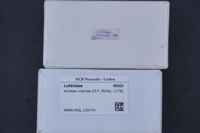 | Keywords: Naturalis Biodiversity Center - RMNH.MOL.135774 1 - Tectura virginea (Müller, 1776) - Lottiidae - Mollusc shell.jpeg artwork Dimensions artwork Document type Lottiidae Tectura Individual count Infraspecific epithet Infraspecific rank Institution Naturalis Kind of unit artwork Kind of unit specimen shell Life stage Medium artwork Nomenclatural code Source institute Leiden Scale the width of the text on the species/QR-code label is 38 mm Occurrence ID page Other fields Other versions artwork Permission license Naturalis donation CC-0 Mollusca Publication location Scientific name Tectura virginea Müller 1776 Scientific name authorship Müller 1776 Source url http //bioportal naturalis nl Specific epithet virginea State or province Subject keywords artwork Subject keywords publication Title artwork Title publication Type status Uploaded with GWToolset Naturalis_Biodiversity_Center_-_RMNH MOL 135774_1_-_Tectura_virginea_ Müller _1776 _-_Lottiidae_-_Mollusc_shell http //medialib naturalis nl/file/id/RMNH MOL 135774_1/format/large Molluscs at Naturalis from the Rijksmuseum van Natuurlijke Historie Media donated by Naturalis Biodiversity Center Tectura virginea |