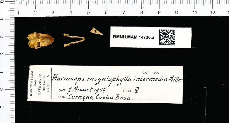 | Keywords: Naturalis Biodiversity Center - RMNH.MAM.14736.a pal - Mormoops megalophylla intermedia - skull.jpeg artwork Dimensions artwork Document type Mormoops Individual count 1 Infraspecific epithet intermedia Infraspecific rank Institution Naturalis Kind of unit artwork Kind of unit specimen skull Life stage Curaçao Cueba Bosá Medium artwork Nomenclatural code Occurrence ID page Other fields Other versions artwork Permission license Naturalis donation CC-0 Publication location Scientific name Mormoops megalophylla intermedia Scientific name authorship female Source url http //bioportal naturalis nl Specific epithet megalophylla State or province Subject keywords artwork Subject keywords publication Title artwork Title publication Type status Uploaded with GWToolset Naturalis_Biodiversity_Center_-_RMNH MAM 14736 a_pal_-_Mormoops_megalophylla_intermedia_-_skull http //medialib naturalis nl/file/id/RMNH MAM 14736 a_pal/format/large Media donated by Naturalis Biodiversity Center Mammals at Naturalis from the Rijksmuseum van Natuurlijke Historie Mormoops megalophylla Mormoops |