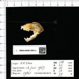 | Keywords: Naturalis Biodiversity Center - RMNH.MAM.19861.a lat - Pteropus dasymallus yayeyamae - skull.jpeg artwork Dimensions artwork Document type Pteropus Individual count 1 Infraspecific epithet yayeyamae Infraspecific rank Institution Naturalis Kind of unit artwork Kind of unit specimen skull Life stage Ishigaki Yayeyama S Liukiu Isl Z O Aziƫ Medium artwork Nomenclatural code Occurrence ID page Other fields Other versions artwork Permission license Naturalis donation CC-0 Publication location Scientific name Pteropus dasymallus yayeyamae Scientific name authorship female Source url http //bioportal naturalis nl Specific epithet dasymallus State or province Subject keywords artwork Subject keywords publication Title artwork Title publication Type status Uploaded with GWToolset Naturalis_Biodiversity_Center_-_RMNH MAM 19861 a_lat_-_Pteropus_dasymallus_yayeyamae_-_skull http //medialib naturalis nl/file/id/RMNH MAM 19861 a_lat/format/large Media donated by Naturalis Biodiversity Center Mammals at Naturalis from the Rijksmuseum van Natuurlijke Historie Pteropus dasymallus Pteropus |