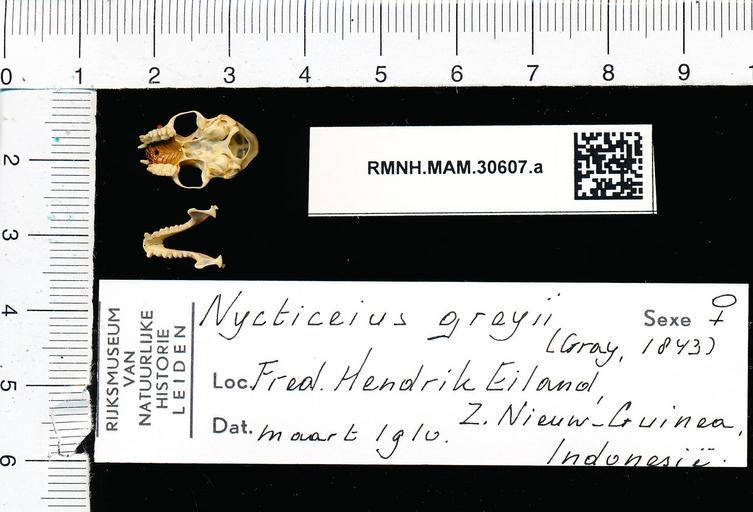 Keywords: Naturalis Biodiversity Center - RMNH.MAM.30607.a pal - Scotorepens greyii - skull.jpeg artwork Dimensions artwork Document type Scotorepens Individual count 1 Infraspecific epithet Infraspecific rank Institution Naturalis Kind of unit artwork Kind of unit specimen skull Life stage Fred Hendrik Eiland Z Nieuw Guinea Indonesia Medium artwork Nomenclatural code Occurrence ID page Other fields Other versions artwork Permission license Naturalis donation CC-0 Publication location Scientific name Scotorepens greyii Scientific name authorship female Source url http //bioportal naturalis nl Specific epithet greyii State or province Subject keywords artwork Subject keywords publication Title artwork Title publication Type status Uploaded with GWToolset Naturalis_Biodiversity_Center_-_RMNH MAM 30607 a_pal_-_Scotorepens_greyii_-_skull http //medialib naturalis nl/file/id/RMNH MAM 30607 a_pal/format/large Media donated by Naturalis Biodiversity Center Mammals at Naturalis from the Rijksmuseum van Natuurlijke Historie Scotorepens greyii Scotorepens |