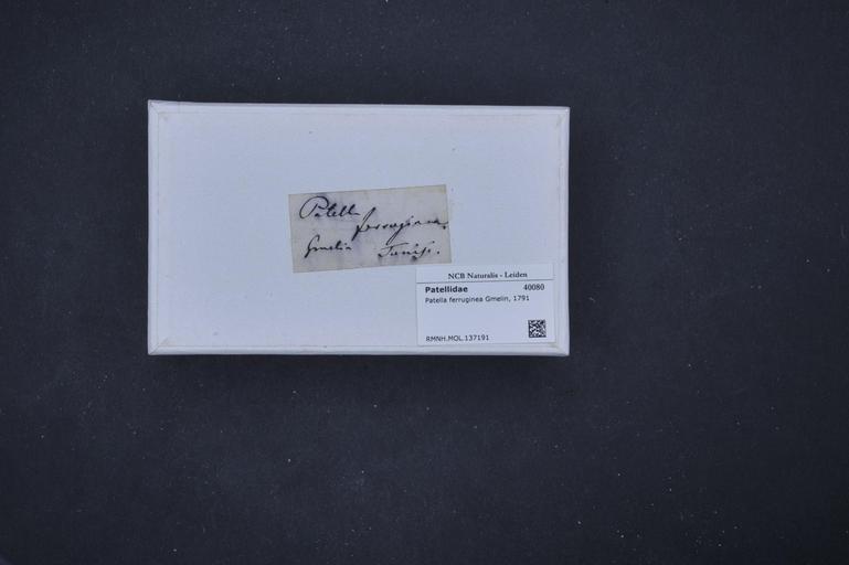 | Keywords: Naturalis Biodiversity Center - RMNH.MOL.137191 1 - Patella ferruginea Gmelin, 1791 - Patellidae - Mollusc shell.jpeg artwork Dimensions artwork Document type Patellidae subfamily Patellinae Patella Individual count Infraspecific epithet Infraspecific rank Institution Naturalis Kind of unit artwork Kind of unit specimen shell Life stage Medium artwork Nomenclatural code Source institute Leiden Scale the width of the text on the species/QR-code label is 38 mm Occurrence ID page Other fields Other versions artwork Permission license Naturalis donation CC-0 Mollusca Publication location Scientific name Patella ferruginea Gmelin 1791 Scientific name authorship Gmelin 1791 Source url http //bioportal naturalis nl Specific epithet ferruginea State or province Subject keywords artwork Subject keywords publication Title artwork Title publication Type status Uploaded with GWToolset Naturalis_Biodiversity_Center_-_RMNH MOL 137191_1_-_Patella_ferruginea_Gmelin _1791_-_Patellidae_-_Mollusc_shell http //medialib naturalis nl/file/id/RMNH MOL 137191_1/format/large Molluscs at Naturalis from the Rijksmuseum van Natuurlijke Historie Media donated by Naturalis Biodiversity Center Patella mollusc Patella ferruginea |