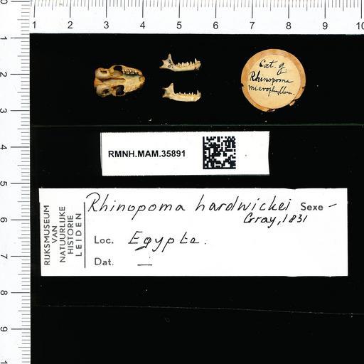 | Keywords: Naturalis Biodiversity Center - RMNH.MAM.35891 pal - Rhinopoma hardwickii - skull.jpeg artwork Dimensions artwork Document type Rhinopoma Individual count 1 Infraspecific epithet Infraspecific rank Institution Naturalis Kind of unit artwork Kind of unit specimen skull Life stage Medium artwork Nomenclatural code Occurrence ID page Other fields Other versions artwork Permission license Naturalis donation CC-0 Publication location Scientific name Rhinopoma hardwickii Scientific name authorship Source url http //bioportal naturalis nl Specific epithet hardwickii State or province Subject keywords artwork Subject keywords publication Title artwork Title publication Type status Uploaded with GWToolset Naturalis_Biodiversity_Center_-_RMNH MAM 35891_pal_-_Rhinopoma_hardwickii_-_skull http //medialib naturalis nl/file/id/RMNH MAM 35891_pal/format/large Media donated by Naturalis Biodiversity Center Mammals at Naturalis from the Rijksmuseum van Natuurlijke Historie Rhinopoma hardwickii Rhinopoma |
