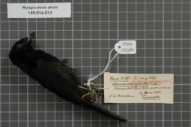 Keywords: Naturalis Biodiversity Center - RMNH.AVES.135780 1 - Myiagra alecto alecto (Temminck, 1827) - Monarchidae - bird skin specimen.jpeg artwork Dimensions artwork Document type Monarchidae Myiagra Individual count 1 Infraspecific epithet alecto Infraspecific rank Institution Naturalis Kind of unit artwork Kind of unit specimen skin Life stage Ternate Medium artwork Nomenclatural code Additional FAMILY INFO to female N 7 Sex remark male Occurrence ID page Other fields Other versions artwork Permission license Naturalis donation CC-0 Publication location Scientific name Myiagra alecto alecto Temminck 1827 Scientific name authorship Temminck 1827 male Source url http //bioportal naturalis nl Specific epithet alecto State or province Ternate Subject keywords artwork Subject keywords publication Title artwork Title publication Type status Uploaded with GWToolset Naturalis_Biodiversity_Center_-_RMNH AVES 135780_1_-_Myiagra_alecto_alecto_ Temminck _1827 _-_Monarchidae_-_bird_skin_specimen http //medialib naturalis nl/file/id/RMNH AVES 135780_1/format/large Media donated by Naturalis Biodiversity Center Songbird specimens at Naturalis Biodiversity Center Myiagra alecto museum specimens |