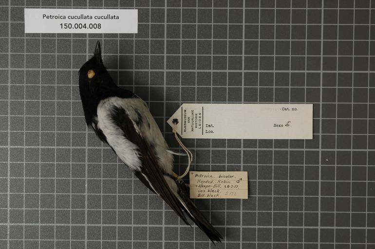 | Keywords: Naturalis Biodiversity Center - RMNH.AVES.13382 1 - Petroica cucullata cucullata (Latham, 1801) - Eopsaltriidae - bird skin specimen.jpeg artwork Dimensions artwork Document type Eopsaltriidae Petroica Individual count 1 Infraspecific epithet cucullata Infraspecific rank Institution Naturalis Kind of unit artwork Kind of unit specimen skin Life stage Sleeps-Hill Medium artwork Nomenclatural code Additional info see drawing dot preceding name Occurrence ID page Other fields Other versions artwork Permission license Naturalis donation CC-0 Publication location Scientific name Petroica cucullata cucullata Latham 1801 Scientific name authorship Latham 1801 male Source url http //bioportal naturalis nl Specific epithet cucullata State or province Subject keywords artwork Subject keywords publication Title artwork Title publication Type status Uploaded with GWToolset Naturalis_Biodiversity_Center_-_RMNH AVES 13382_1_-_Petroica_cucullata_cucullata_ Latham _1801 _-_Eopsaltriidae_-_bird_skin_specimen http //medialib naturalis nl/file/id/RMNH AVES 13382_1/format/large Media donated by Naturalis Biodiversity Center Songbird specimens at Naturalis Biodiversity Center Petroica cucullata Petroica |