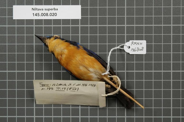 | Keywords: Naturalis Biodiversity Center - RMNH.AVES.136808 2 - Niltava superba (Stresemann, 1925) - Muscicapidae - bird skin specimen.jpeg artwork Dimensions artwork Document type Muscicapidae Niltava Individual count 1 Infraspecific epithet Infraspecific rank Institution Naturalis Kind of unit artwork Kind of unit specimen skin Life stage adult Indonesia C Borneo Upper Sibau River Medium artwork Nomenclatural code Check type Sex remark on label male ad lab Occurrence ID page Other fields Other versions artwork Permission license Naturalis donation CC-0 Publication location Scientific name Niltava superba Stresemann 1925 Scientific name authorship Stresemann 1925 male Source url http //bioportal naturalis nl Specific epithet superba State or province C Borneo Subject keywords artwork Subject keywords publication Title artwork Title publication Type status Uploaded with GWToolset Naturalis_Biodiversity_Center_-_RMNH AVES 136808_2_-_Niltava_superba_ Stresemann _1925 _-_Muscicapidae_-_bird_skin_specimen http //medialib naturalis nl/file/id/RMNH AVES 136808_2/format/large Media donated by Naturalis Biodiversity Center Songbird specimens at Naturalis Biodiversity Center Cyornis superbus museum specimens |