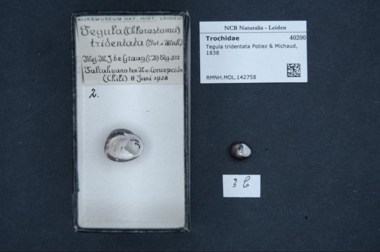 Keywords: Naturalis Biodiversity Center - RMNH.MOL.142758 - Tegula tridentata (Potiez & Michaud, 1838) - Turbinidae - Mollusc shell.jpeg artwork Dimensions artwork Document type Turbinidae Tegula Individual count Infraspecific epithet Infraspecific rank Institution Naturalis Kind of unit artwork Kind of unit specimen shell Life stage Medium artwork Nomenclatural code Source institute Leiden Scale the width of the text on the species/QR-code label is 38 mm Occurrence ID page Other fields Other versions artwork Permission license Naturalis donation CC-0 Mollusca Publication location Scientific name Tegula tridentata Potiez Michaud 1838 Scientific name authorship Potiez Michaud 1838 Source url http //bioportal naturalis nl Specific epithet tridentata State or province Subject keywords artwork Subject keywords publication Title artwork Title publication Type status Uploaded with GWToolset Naturalis_Biodiversity_Center_-_RMNH MOL 142758_-_Tegula_tridentata_ Potiez_ _Michaud _1838 _-_Turbinidae_-_Mollusc_shell http //medialib naturalis nl/file/id/RMNH MOL 142758/format/large Molluscs at Naturalis from the Rijksmuseum van Natuurlijke Historie Media donated by Naturalis Biodiversity Center Tegula Tegula tridentata