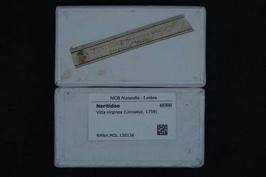 | Keywords: Naturalis Biodiversity Center - RMNH.MOL.150136 1 - Vitta virginea (Linnaeus, 1758) - Neritidae - Mollusc shell.jpeg artwork Dimensions artwork Document type Neritidae Vitta Individual count Infraspecific epithet Infraspecific rank Institution Naturalis Kind of unit artwork Kind of unit specimen shell Life stage Medium artwork Nomenclatural code Scale the width of the text on the species/QR-code label is 38 mm Occurrence ID page Other fields Other versions artwork Permission license Naturalis donation CC-0 Mollusca Publication location Scientific name Vitta virginea Linnaeus 1758 Scientific name authorship Linnaeus 1758 Source url http //bioportal naturalis nl Specific epithet virginea State or province Subject keywords artwork Subject keywords publication Title artwork Title publication Type status Uploaded with GWToolset Naturalis_Biodiversity_Center_-_RMNH MOL 150136_1_-_Vitta_virginea_ Linnaeus _1758 _-_Neritidae_-_Mollusc_shell http //medialib naturalis nl/file/id/RMNH MOL 150136_1/format/large Media donated by Naturalis Biodiversity Center Molluscs at Naturalis from the Rijksmuseum van Natuurlijke Historie Vitta virginea |