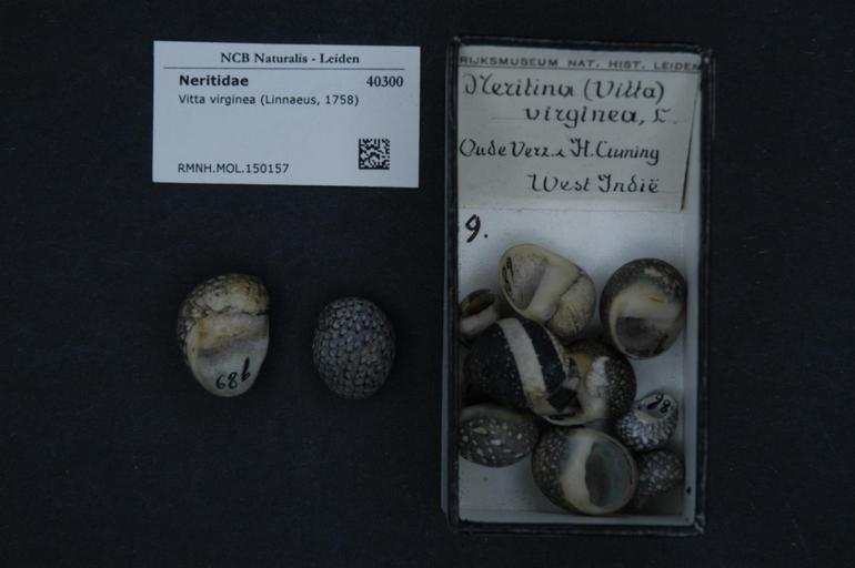 | Keywords: Naturalis Biodiversity Center - RMNH.MOL.150157 - Vitta virginea (Linnaeus, 1758) - Neritidae - Mollusc shell.jpeg artwork Dimensions artwork Document type Neritidae Vitta Individual count Infraspecific epithet Infraspecific rank Institution Naturalis Kind of unit artwork Kind of unit specimen shell Life stage Medium artwork Nomenclatural code Scale the width of the text on the species/QR-code label is 38 mm Occurrence ID page Other fields Other versions artwork Permission license Naturalis donation CC-0 Mollusca Publication location Scientific name Vitta virginea Linnaeus 1758 Scientific name authorship Linnaeus 1758 Source url http //bioportal naturalis nl Specific epithet virginea State or province Subject keywords artwork Subject keywords publication Title artwork Title publication Type status Uploaded with GWToolset Naturalis_Biodiversity_Center_-_RMNH MOL 150157_-_Vitta_virginea_ Linnaeus _1758 _-_Neritidae_-_Mollusc_shell http //medialib naturalis nl/file/id/RMNH MOL 150157/format/large Media donated by Naturalis Biodiversity Center Molluscs at Naturalis from the Rijksmuseum van Natuurlijke Historie Vitta virginea |