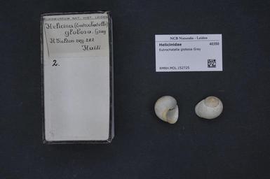 Keywords: Naturalis Biodiversity Center - RMNH.MOL.152725 - Eutrochatella globosa Gray - Helicinidae - Mollusc shell.jpeg artwork Dimensions artwork Document type Helicinidae subfamily Vianinae Eutrochatella Individual count Infraspecific epithet Infraspecific rank Institution Naturalis Kind of unit artwork Kind of unit specimen shell Life stage Medium artwork Nomenclatural code Scale the width of the text on the species/QR-code label is 38 mm Occurrence ID page Other fields Other versions artwork Permission license Naturalis donation CC-0 Mollusca Publication location Scientific name Eutrochatella globosa Gray Scientific name authorship Sowerby 1839 Source url http //bioportal naturalis nl Specific epithet globosa State or province Subject keywords artwork Subject keywords publication Title artwork Title publication Type status Uploaded with GWToolset Naturalis_Biodiversity_Center_-_RMNH MOL 152725_-_Eutrochatella_globosa_Gray_-_Helicinidae_-_Mollusc_shell http //medialib naturalis nl/file/id/RMNH MOL 152725/format/large Media donated by Naturalis Biodiversity Center Molluscs at Naturalis from the Rijksmuseum van Natuurlijke Historie Eutrochatella globosa Eutrochatella