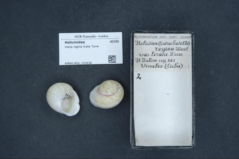 | Keywords: Naturalis Biodiversity Center - RMNH.MOL.152836 - Viana regina lirata Torre - Helicinidae - Mollusc shell.jpeg artwork Dimensions artwork Document type Helicinidae subfamily Vianinae Viana Individual count Infraspecific epithet lirata Infraspecific rank Institution Naturalis Kind of unit artwork Kind of unit specimen shell Life stage Medium artwork Nomenclatural code Scale the width of the text on the species/QR-code label is 38 mm Occurrence ID page Other fields Other versions artwork Permission license Naturalis donation CC-0 Mollusca Publication location Scientific name Viana regina lirata Torre Scientific name authorship De la Torre Source url http //bioportal naturalis nl Specific epithet regina State or province Subject keywords artwork Subject keywords publication Title artwork Title publication Type status Uploaded with GWToolset Naturalis_Biodiversity_Center_-_RMNH MOL 152836_-_Viana_regina_lirata_Torre_-_Helicinidae_-_Mollusc_shell http //medialib naturalis nl/file/id/RMNH MOL 152836/format/large Media donated by Naturalis Biodiversity Center Molluscs at Naturalis from the Rijksmuseum van Natuurlijke Historie Viana regina Viana |