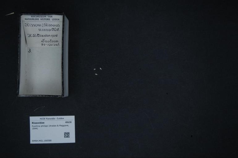 | Keywords: Naturalis Biodiversity Center - RMNH.MOL.166588 - Pusillina philippi (Aradas & Maggiore, 1844) - Rissoidae - Mollusc shell.jpeg artwork Dimensions artwork Document type Rissoidae subfamily Rissoinae Pusillina Individual count Infraspecific epithet Infraspecific rank Institution Naturalis Kind of unit artwork Kind of unit specimen shell Life stage Medium artwork Nomenclatural code Scale the width of the text on the species/QR-code label is 38 mm Occurrence ID page Other fields Other versions artwork Permission license Naturalis donation CC-0 Mollusca Publication location Scientific name Pusillina philippi Aradas Maggiore 1844 Scientific name authorship Aradas Maggiore 1844 Source url http //bioportal naturalis nl Specific epithet philippi State or province Subject keywords artwork Subject keywords publication Title artwork Title publication Type status Uploaded with GWToolset Naturalis_Biodiversity_Center_-_RMNH MOL 166588_-_Pusillina_philippi_ Aradas_ _Maggiore _1844 _-_Rissoidae_-_Mollusc_shell http //medialib naturalis nl/file/id/RMNH MOL 166588/format/large Media donated by Naturalis Biodiversity Center Molluscs at Naturalis from the Rijksmuseum van Natuurlijke Historie Pusillina philippi Pusillina |