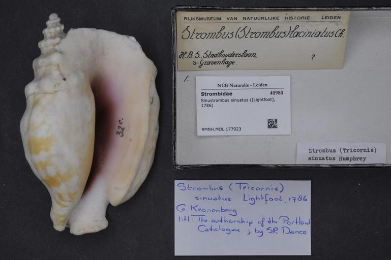 Keywords: Naturalis Biodiversity Center - RMNH.MOL.177923 - Sinustrombus sinuatus (-Lightfoot-, 1786) - Strombidae - Mollusc shell.jpeg artwork Dimensions artwork Document type Strombidae Sinustrombus Individual count Infraspecific epithet Infraspecific rank Institution Naturalis Kind of unit artwork Kind of unit specimen shell Life stage Medium artwork Nomenclatural code Source institute Rijksmuseum van Natuurlijke Historie Leiden Scale the width of the text on the species/QR-code label is 38 mm Occurrence ID page Other fields Other versions artwork Permission license Naturalis donation CC-0 Mollusca Publication location Scientific name Sinustrombus sinuatus Lightfoot 1786 Scientific name authorship Lightfoot 1786 Source url http //bioportal naturalis nl Specific epithet sinuatus State or province Subject keywords artwork Subject keywords publication Title artwork Title publication Type status Uploaded with GWToolset Naturalis_Biodiversity_Center_-_RMNH MOL 177923_-_Sinustrombus_sinuatus_ Lightfoot _1786 _-_Strombidae_-_Mollusc_shell http //medialib naturalis nl/file/id/RMNH MOL 177923/format/large Media donated by Naturalis Biodiversity Center Molluscs at Naturalis from the Rijksmuseum van Natuurlijke Historie Sinustrombus sinuatus Sinustrombus |