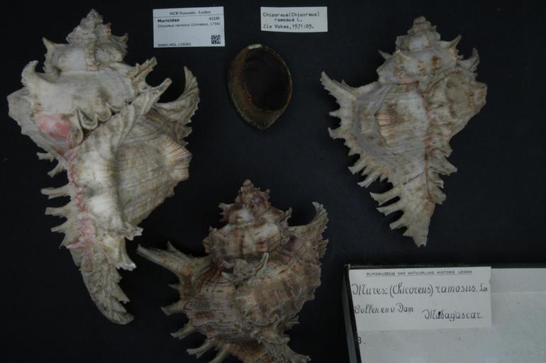 | Keywords: Naturalis Biodiversity Center - RMNH.MOL.129082 - Chicoreus ramosus (Linnaeus, 1758) - Muricidae - Mollusc shell.jpeg artwork Dimensions artwork Document type Muricidae subfamily Muricinae Chicoreus Individual count Infraspecific epithet Infraspecific rank Institution Naturalis Kind of unit artwork Kind of unit specimen shell Life stage Medium artwork Nomenclatural code Source institute Leiden Scale the width of the text on the species/QR-code label is 38 mm Occurrence ID page Neogastropoda Other fields Other versions artwork Permission license Naturalis donation CC-0 Mollusca Publication location Scientific name Chicoreus ramosus Linnaeus 1758 Scientific name authorship Linnaeus 1758 Source url http //bioportal naturalis nl Specific epithet ramosus State or province Subject keywords artwork Subject keywords publication Title artwork Title publication Type status Uploaded with GWToolset Naturalis_Biodiversity_Center_-_RMNH MOL 129082_-_Chicoreus_ramosus_ Linnaeus _1758 _-_Muricidae_-_Mollusc_shell http //medialib naturalis nl/file/id/RMNH MOL 129082/format/large Molluscs at Naturalis from the Rijksmuseum van Natuurlijke Historie Media donated by Naturalis Biodiversity Center Chicoreus ramosus |