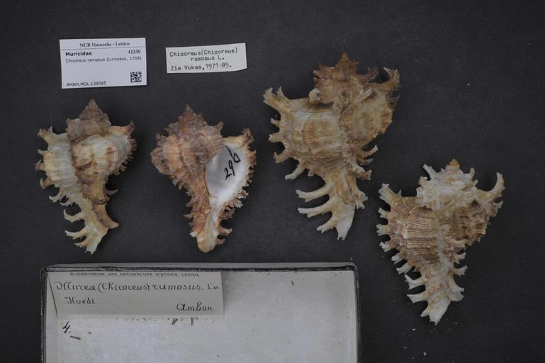 | Keywords: Naturalis Biodiversity Center - RMNH.MOL.129085 - Chicoreus ramosus (Linnaeus, 1758) - Muricidae - Mollusc shell.jpeg artwork Dimensions artwork Document type Muricidae subfamily Muricinae Chicoreus Individual count Infraspecific epithet Infraspecific rank Institution Naturalis Kind of unit artwork Kind of unit specimen shell Life stage Medium artwork Nomenclatural code Source institute Leiden Scale the width of the text on the species/QR-code label is 38 mm Occurrence ID page Neogastropoda Other fields Other versions artwork Permission license Naturalis donation CC-0 Mollusca Publication location Scientific name Chicoreus ramosus Linnaeus 1758 Scientific name authorship Linnaeus 1758 Source url http //bioportal naturalis nl Specific epithet ramosus State or province Subject keywords artwork Subject keywords publication Title artwork Title publication Type status Uploaded with GWToolset Naturalis_Biodiversity_Center_-_RMNH MOL 129085_-_Chicoreus_ramosus_ Linnaeus _1758 _-_Muricidae_-_Mollusc_shell http //medialib naturalis nl/file/id/RMNH MOL 129085/format/large Molluscs at Naturalis from the Rijksmuseum van Natuurlijke Historie Media donated by Naturalis Biodiversity Center Chicoreus ramosus |