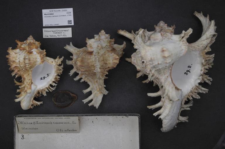 | Keywords: Naturalis Biodiversity Center - RMNH.MOL.129087 - Chicoreus ramosus (Linnaeus, 1758) - Muricidae - Mollusc shell.jpeg artwork Dimensions artwork Document type Muricidae subfamily Muricinae Chicoreus Individual count Infraspecific epithet Infraspecific rank Institution Naturalis Kind of unit artwork Kind of unit specimen shell Life stage Medium artwork Nomenclatural code Source institute Leiden Scale the width of the text on the species/QR-code label is 38 mm Occurrence ID page Neogastropoda Other fields Other versions artwork Permission license Naturalis donation CC-0 Mollusca Publication location Scientific name Chicoreus ramosus Linnaeus 1758 Scientific name authorship Linnaeus 1758 Source url http //bioportal naturalis nl Specific epithet ramosus State or province Subject keywords artwork Subject keywords publication Title artwork Title publication Type status Uploaded with GWToolset Naturalis_Biodiversity_Center_-_RMNH MOL 129087_-_Chicoreus_ramosus_ Linnaeus _1758 _-_Muricidae_-_Mollusc_shell http //medialib naturalis nl/file/id/RMNH MOL 129087/format/large Molluscs at Naturalis from the Rijksmuseum van Natuurlijke Historie Media donated by Naturalis Biodiversity Center Chicoreus ramosus |