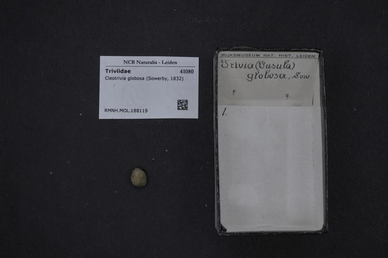 | Keywords: Naturalis Biodiversity Center - RMNH.MOL.188119 - Cleotrivia globosa (Sowerby, 1832) - Triviidae - Mollusc shell.jpeg artwork Dimensions artwork Document type Triviidae Cleotrivia Individual count Infraspecific epithet Infraspecific rank Institution Naturalis Kind of unit artwork Kind of unit specimen shell Life stage Medium artwork Nomenclatural code Source institute Rijksmuseum van Natuurlijke Historie Leiden Scale the width of the text on the species/QR-code label is 38 mm Occurrence ID page Other fields Other versions artwork Permission license Naturalis donation CC-0 Mollusca Publication location Scientific name Cleotrivia globosa Sowerby 1832 Scientific name authorship Sowerby 1832 Source url http //bioportal naturalis nl Specific epithet globosa State or province Subject keywords artwork Subject keywords publication Title artwork Title publication Type status Uploaded with GWToolset Naturalis_Biodiversity_Center_-_RMNH MOL 188119_-_Cleotrivia_globosa_ Sowerby _1832 _-_Triviidae_-_Mollusc_shell http //medialib naturalis nl/file/id/RMNH MOL 188119/format/large Media donated by Naturalis Biodiversity Center Molluscs at Naturalis from the Rijksmuseum van Natuurlijke Historie Cleotrivia globosa Cleotrivia |