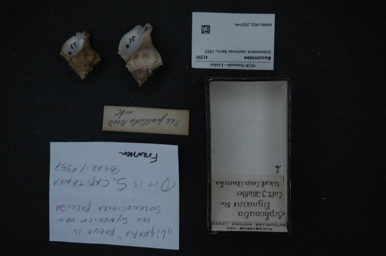 | Keywords: Naturalis Biodiversity Center - RMNH.MOL.200744 - Solenosteira capitanea Berry, 1957 - Buccinidae - Mollusc shell.jpeg artwork Dimensions artwork Document type Buccinidae subfamily Pisaniinae Solenosteira Individual count Infraspecific epithet Infraspecific rank Institution Naturalis Kind of unit artwork Kind of unit specimen shell Life stage Medium artwork Nomenclatural code Source institute Rijksmuseum van Natuurlijke Historie Leiden Scale the width of the text on the species/QR-code label is 38 mm Occurrence ID page Other fields Other versions artwork Permission license Naturalis donation CC-0 Mollusca Publication location Scientific name Solenosteira capitanea Berry 1957 Scientific name authorship Berry 1957 Source url http //bioportal naturalis nl Specific epithet capitanea State or province Subject keywords artwork Subject keywords publication Title artwork Title publication Type status Uploaded with GWToolset Naturalis_Biodiversity_Center_-_RMNH MOL 200744_-_Solenosteira_capitanea_Berry _1957_-_Buccinidae_-_Mollusc_shell http //medialib naturalis nl/file/id/RMNH MOL 200744/format/large Media donated by Naturalis Biodiversity Center Molluscs at Naturalis from the Rijksmuseum van Natuurlijke Historie Solenosteira capitanea Solenosteira |